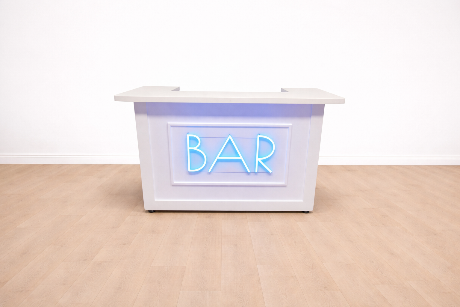 Elevate your event with this sleek, freestanding white bar. It features a spacious countertop for serving, and a convenient lower workstation for a bartender. This durable and portable bar is perfect for parties, weddings, and corporate events.
